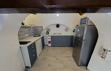 Minden gépesítés és berendezés a vételár részét képezi (Gorenje villany főzőlap, mosogatógép, háztartási gépek, bútorok, Indesit hűtő, Ikea bútorok).