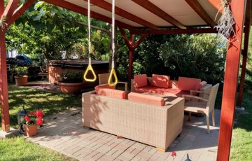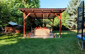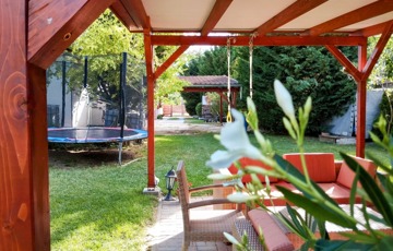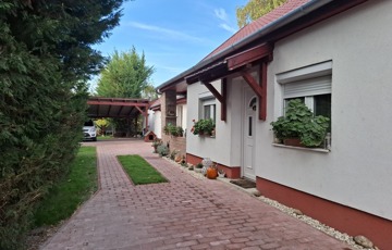 Gyönyörűen karbantartott és kellemesen kezelhető 759 m2-es telkén fedett kocsibeálló, kerti kiülő és masszázs medence került kialakításra, valamint a ház előtt 110 m2-en térkövezve lett az udvar. Ajánlom mindazoknak, akik a Balaton közelében szeretnének élni, és egy meghitt, barátságos családi otthont keresnek, ami minden igényüket kiszolgálja.