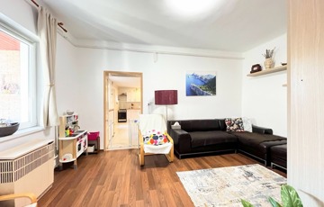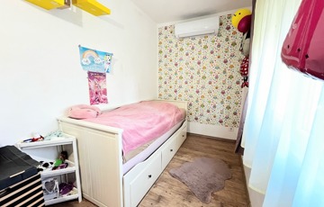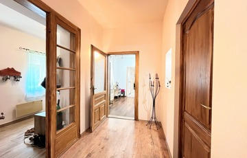 A földszintes épület két részre tagolódik, a belső hasznos területe 160 m2 összesen, mely 2 szobát, előszobát, nappalit, konyha-étkezőt, fürdőszobát, valamint gardróbot foglal magába, valamint egy külön bejáratú apartmanrészt, amely a ház folytatásaként további egy szobával, fürdőszobával, mosókonyhával és tárolóval rendelkezik, amely könnyedén szobává alakítható.