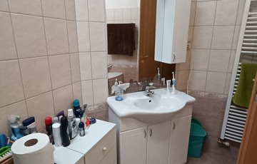 Az emeleten 3 hálószoba fürdőszoba és külön mosókonyha kapott helyet. A fürdőszoba világos, tágas zuhanykabinnal felszerelve.