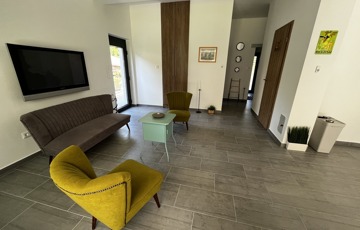 Balatonföldvár nyugodt, csöndes és családias részén, 5 perc sétára a Balatontól kiadó ez a ritkán látható minőségben, 2018-ban épült, összesen 160 nm-es családi ház.