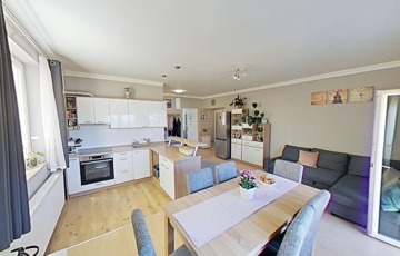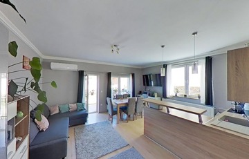 A szuterénszintről egy lépcsőn tudunk feljutni a lakószintre, melynek természetesen külön bejárata is van. Ezen a szinten a szülői háló, gyerekszoba, dolgozószoba és a nagy, amerikai konyhás, nappali-étkező osztozik. A szülői hálóból és a nappaliból is csodás panoráma nyílik a Bükk hegyeire, erdeire. A nappaliból nyíló fedett terasz a csodás kilátásával valószínűleg bármelyik család kedvenc helye lesz!