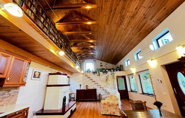 Az emeleten – mely látványos megoldásként szinte egybeolvad a földszinttel – található a galéria, 11 m hosszú könyvtár és a másik hálószoba. Igény szerint a galéria szobává alakítható.