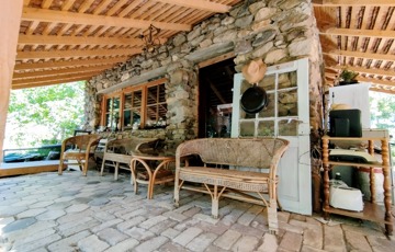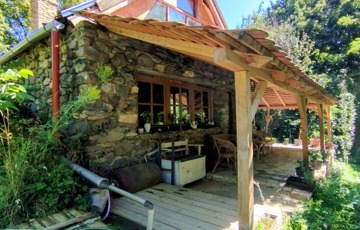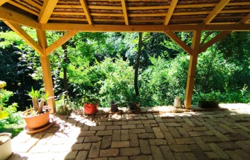 Valamint csatlakozik hozzá még egy 60 m2-es fa terasz a ház és patak közötti szurdok közepén, melyre akár fürdődézsa vagy jurta is tervezhető, vagy egy pergolás terasz.