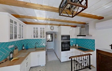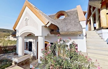 A részletekben rejlő minőségi eleganciát hosszan lehetne taglalni: kézzel készített kerámia burkolatok, tömörfából készült konyhabútor AEG gépekkel, kovácsoltvas korlátok és elektromos kapu, mészkő és márvány felületek, tihanyi bazalt tufából készült homlokzati kőburkolatok, vagy éppen a pince korlát, ami fekete dió gyökérből készült. Minden képzeletet felülmúló adottságait röviden összefoglalni lehetetlen, tényleg ajánlott a virtuális túra megnézése.