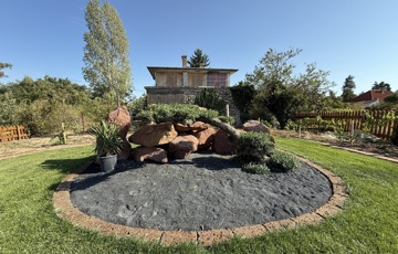 A 991 m2-es kert teljes földcserén esett át, így a telepített növények is otthon érzik magukat.