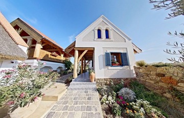 Eladó ez a Balaton-felvidék hangulatához kreatívan hű, különleges gondossággal és maximális szakértelemmel felújított - gyakorlatilag újraálmodott és újraépített - nyaraló /otthon részleges balatoni panorámával, Csopak csendes zsákutcájában, 3 perces autóútra Balatonfüred és Csopak központjától, a Balaton partjától egy kilométernyire.