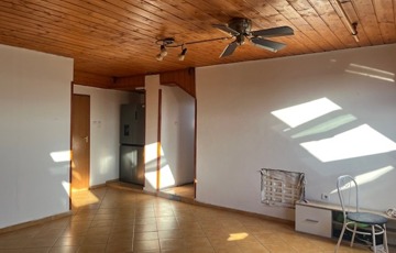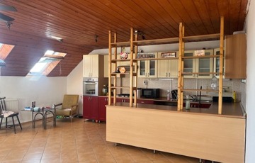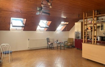 Belső feljáró visz a legfelső szintre, ami lakásként funkcionál. Tágas fürdőszoba, hatalmas amerikai konyhás étkező, egy nagy szoba, mögötte egy tárolóhelyiség, amiből akár tökéletes gardrób válhat.