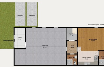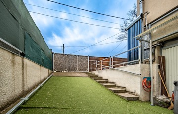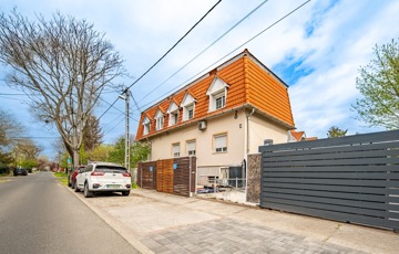 Az ingatlanhoz 75 m2 kertkapcsolat jár, melyből egy az eredeti pinceszinthez autólejárat (jelenleg gyalogoslejárat), kettő pedig kültéri beállóhely. Az összesen három autókapuból kettő elektromos, egy kézzel nyíló. A közös költség 8480 Ft, a víz és a villany is egyedileg mért.