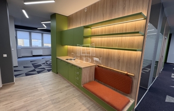 Az üvegfalas megoldások világos, inspiráló munkakörnyezetet teremtenek, miközben a zárt irodák megfelelő diszkréciót biztosítanak vezetői vagy tárgyaló funkciókra.