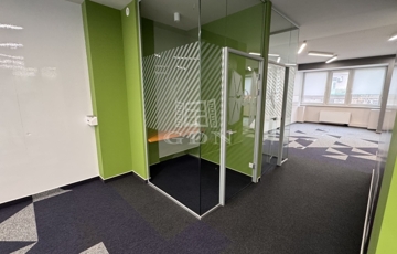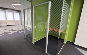 - több, különböző méretű üvegfalú zárt iroda / tárgyaló