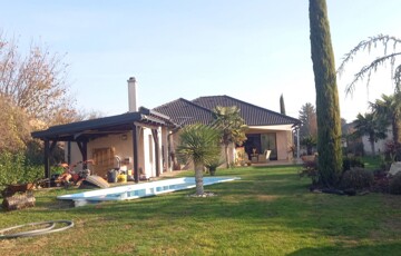 Az 1830 m2-es gyönyörűen karbantartott, parkosított, trópusi, mediterrán hangulatú telken a ház mellett egy medence, egy kazánház és egy fedett tároló is helyet kapott.