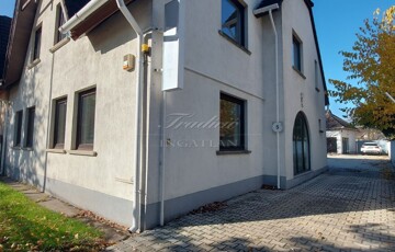 Az ingatlan jelenleg irodaházként működik, de nagyobb család részére is kitűnő életteret nyújt. A telek nagy része térkővel burkolt, ahol 6 autó parkolására van lehetőség. A garázs egy raktárhoz/üzlethelyiséghez kapcsolódik, melynek tetőtere is beépített.