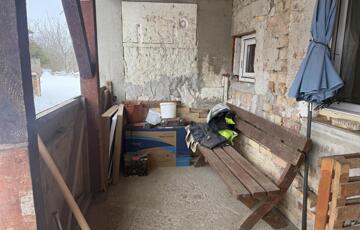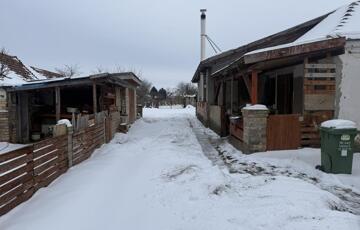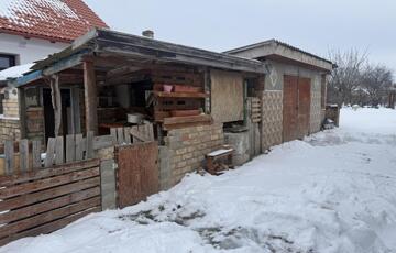 A telek folytatásában tégla építésű állattartó épületek, valamint egy különálló, lapostetős garázs és tároló található – mind felújítandó, de használható állapotban.