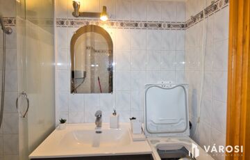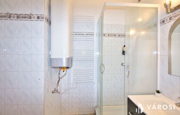 A fürdőszoba is megújult, kivették a kádat, tusoló lett berakva és a falat újra csempézték, törölköző szárítót is felszereltek.