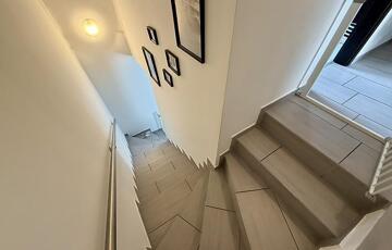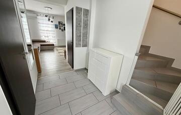 Az ingatlan remek elosztású: az alsó szinten egy tágas előszoba fogad, innen nyílik az amerikai konyhás nappali, két praktikus kamra, valamint egy vendég WC. A nappaliból közvetlen kijárat vezet a 70 nm-es, privát, elkerített kertbe, ahol egy gondosan kialakított, 24 nm-es terasz biztosít ideális helyszínt pihenéshez vagy baráti összejövetelekhez.