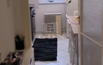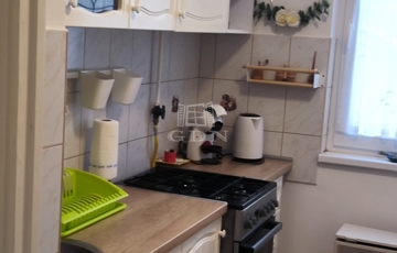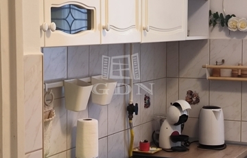 A konyha szintén beépített és étkezőasztal is van benne székekkel, mely a lakás részét képezi. Vízóra van a lakásban.