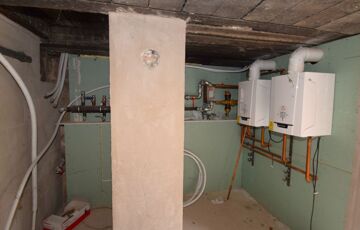 Belső kőműves átalakítási munkálatok mellett a teljes fűtési rendszert lecserélték, melyet két nagyteljesítményű, energiatakarékos gázkazán működtet, hőleadók Xénia típusú alumínium radiátorok, melegvíztároló: puffertartájjal.