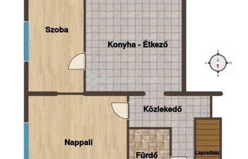 Elosztása kiváló: tágas nappali, külön hálószoba, nagyméretű, étkezős konyha, valamint fürdőszoba szolgálja a kényelmet. A szobák keleti, a konyha déli tájolású, így a lakás egész nap világos és barátságos.