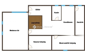 földszint: 84 m² + 42 m² gépkocsi tároló + 32,5 m² terasz