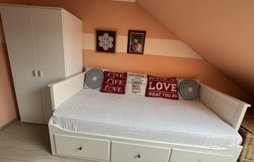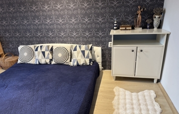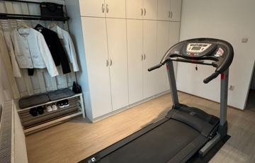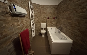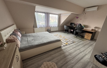 A következő félszinten egy hálószoba, egy mosókonyha és egy igényesen kialakított, olasz jacuzzikádas fürdőszoba található. Efölött két további hálószoba kapott helyet, míg a legfelső szinten egy 30 m²-nél is nagyobb szülői háló található, saját mosdóval, ahol a fürdőkád vagy zuhanykabin kiépítése már elő van készítve.