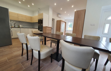 Kiadó Vecsés , kertvárosi részén 2018-ban teljesen felújított, 200 nm-es kétszintes családi ház, önálló kertrésszel. Nappali+ 5 szobás, szobánként saját fürdőszobával.Nagy közös nappali, konyha ebédlővel, rendezett kerttel. A kertben van egy melléképület, ahol egy raktár és egy mosókonyha van kialakítva. Gépesített, jól felszerelt konyha, minden szoba légkondicionált, bútorozott, tv-vel felszerelt, fűtése gáz-cirkóval megoldott. Kertben fedett 2 autós beálló. A kerten belül még 2 autónak van parkolási lehetőség.