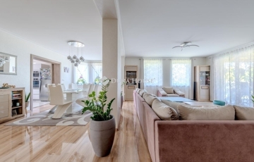 Az ingatlan összesen 355 m² hasznos alapterülettel rendelkezik, terei tágasak, világosak, átgondolt elrendezésük hosszú távon is kényelmes együttélést biztosít akár több generáció számára.