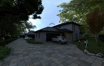 Motoros kapu, térkövezett kocsibejáró