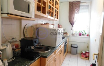 Az ingatlan 43 m2-es lakóterülettel rendelkezik, ami magába foglal egy kimondottan tágas nagyszobát, egy külön bejáratú, cirka 6m2-es félszobát, vele szemközt a fürdőt, ami együtt van a WC-vel, továbbá a bejárattól balra a konyhát és jobbra a spájzot.