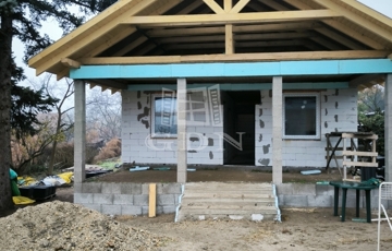 A ház ytongból épül, 10 cm-es külső hungarocell szigetelést kap. Fafödémes, és betoncserép fedésű, a tető párazáró fóliával bevont. A jó hőtartást szolgálja továbbá a padlástérben elhelyezett 25 cm-es kőzetgyapot szigetelés is.