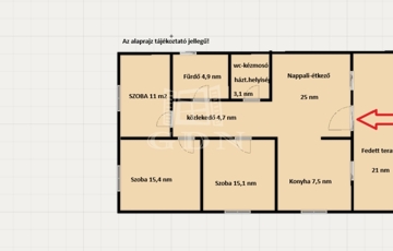 Ezenkívül egy félfallal elválasztott 7,4 nm-es konyha, 3 szoba