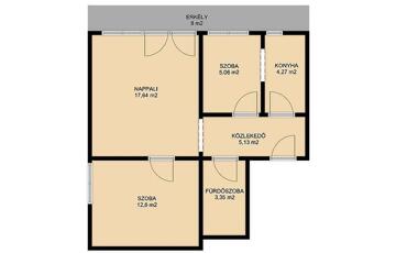 Budapest XV. kerületében, Újpalotán eladó 48 nm-es, másfél szobás, 2. emeleti társasházi téglalakás 8 nm-es loggiával.