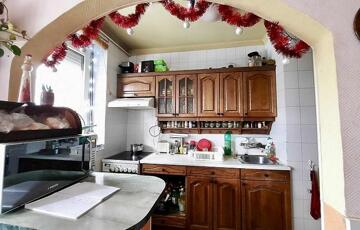 A közlekedőből nyílik a konyha és az étkező, melyeket egy széles boltív választ el egymástól, továbbá innen érhető el a fürdőszoba és a nappali is. A nappaliból kijárat nyílik a tágas loggiára, valamint innen közelíthető meg a külön nyíló hálószoba.