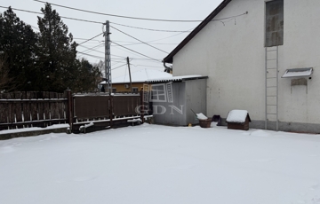 A ház elkőkertet követően helyezkedik el a telken, majd mögötte egy tégla szerkezetű kb 15 nm nagyságú tároló található, amely mellett 6 autó beállására alkalmas udvar fekszik. A terület rendezett, körbekerített.