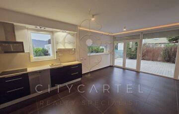 A nappali hangulatához nagyban hozzájárul a 20 nm-es terasz és a saját kert látványa.