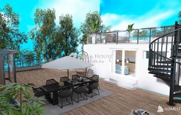 Az ingatlan egy új építésű, liftes, akadálymentesített társasház teljes felső szintje, amely bruttó 360 m2, melyből a lakás : egy háló+ amerikai konyha-nappali, modern ,legújabb technológiával felszerelt, kivitelezett otthon. A teljes tetőterasz a városi panorámával rendelkezik. Az ingatlan kulcsrakész állapotban kerül átadásra.