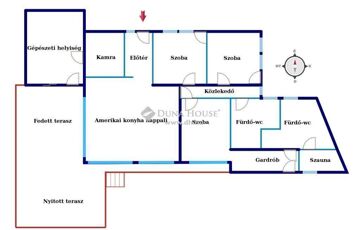Az ingatlan 126m2 lakóterű, amerikai konyha nappali+3 háló, dupla fürdő-mosdó, gardrób. szauna, dupla terasz elosztású.