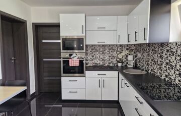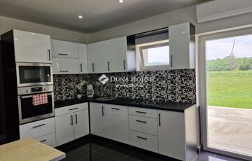 A ház fűtése elektromos kazánnal és padlófűtéssel van megoldva, emellett három darab klíma is biztosítja a megfelelő hőmérsékletet az ingatlanban. A vételár része egy modern, magasfényű fehér-fekete konyhabútor beépített gépekkel, amely tökéletesen illeszkedik a ház elegáns stílusához.
