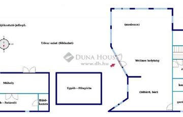 Ugyancsak ezen a szinten került kialakításra a több, mint 100 nm-es wellness helyiség 6x3 nm-es beltéri fűthető medencével (ami betonozott és csempézett), biliárd teremmel, bársarokkal, társalgóval.