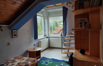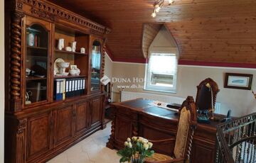A felső szinten kialakításra került 3 hálószoba, egy a galérián berendezett dolgozó szoba, fürdő, WC. Az egyik hálóból csigalépcsőn jutunk fel egy további toronyszobába.