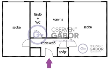 A 49 m2-es lakótér tágas, praktikus elrendezésű. Szobái tágasak, külön bejáratúak és egymástól jól elszeparáltak. A két szoba „között” kapott helyet a konyha, ami méretéből fakadóan étkezőként is szolgál, valamint a fürdő, ami magába foglalja a WC-t is. A fürdő kapcsán kiemelendő, hogy nagyméretű ablakkal rendelkezik, így abszolút világos és jól szellőztethető. A helyiségeket összekötő közlekedőből, a konyhával szemközt még egy spájz is nyílik.