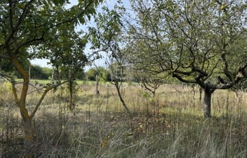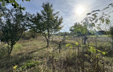 A telek 1430m2, egy része fákkal beültetett, hátsó részében szőlős található.