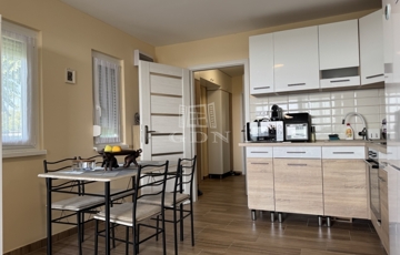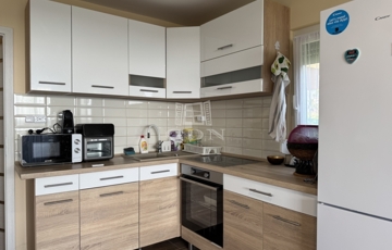 A telek 800m2, teljesen körbekerített, nagy része térkövezett és örökzöldekkel beültetett. Pergolás kültéri konyha áll rendelkezésre a kerti élményekhez.