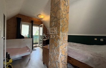 Nappali-konyha-étkező, fürdőszoba található a földszinten. A tetőtéri rész hálószobaként funkcionál, kapcsolódik hozzá egy erkély is.