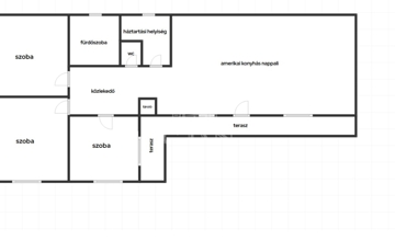 Amerikai konyhás nappali, közlekedő, 3 tágas hálószoba, fürdőszoba, vendég WC, háztartási helyiség került kialakításra.