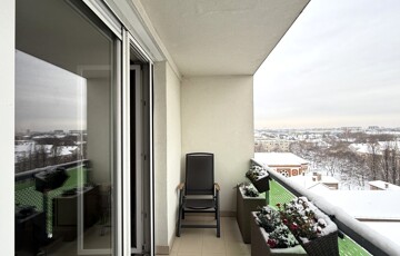 a sunny, top-floor (8th-floor), 4-room apartment with 2 terraces, with a total area of 82.5 sqm (according to the title deed: 77 sqm internal floor area plus approx. 11 sqm total terrace area), a like-new luxury apartment with a full panoramic view and extras, is for sale,