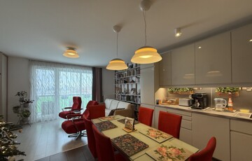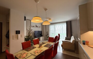 • elegáns nappalitér (kb. 22nm) tágas konyhával étkező térrel (összesen kb. 29nm),