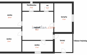 Az elrendezés kiváló: minden helyiség külön nyílik a nappaliból, élhető, jól átgondolt térkialakítással.