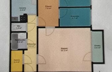 Az ingatlan 1 szobával és 2 félszobával rendelkezik, továbbá tágas étkező, külön konyha, kamra, kádas fürdőszoba, külön WC, valamint erkély biztosítja a kényelmes mindennapokat.