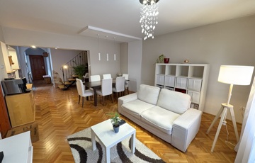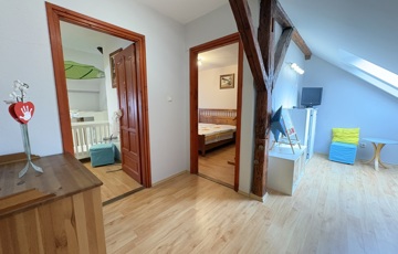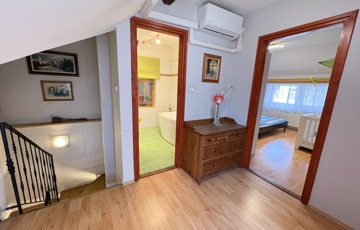 Kaposváron a Hársfa utcában - a kórház közelében - 140 m2-es, 2010-ben felújított 2 szintes házrész eladó. Az épület alsó szintjén tágas nappali-étkező, előszoba-közlekedő, konyha, kamra, 2 szoba, fürdőszoba, wc helyiségek találhatóak. A felső szinten – a tetőtérben - előtér, további 2 szoba, fürdőszoba-wc helyiségek kerültek kialakításra. Az épület fűtése és melegvíz ellátása kombi gázkazánnal megoldott, továbbá a szobákban a tulajdonos Midea típusú légkondicionálókat szereltetett, valamint a tetőre napelemeket telepíttetett. Az ingatlanhoz továbbá tartozik az udvaron egy hangulatosan kialakított terasz, illetve a melléképületben tároló rész is. Telek: 343 m2